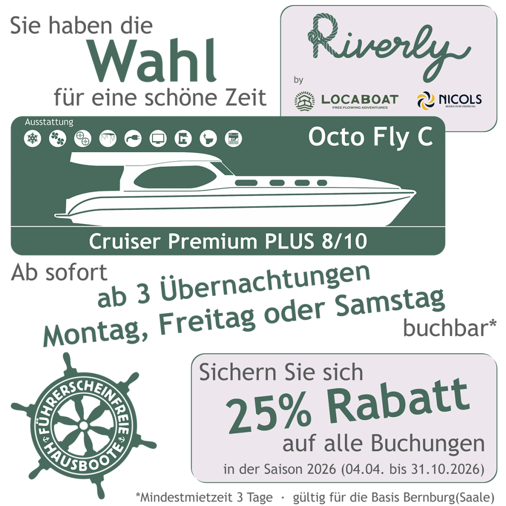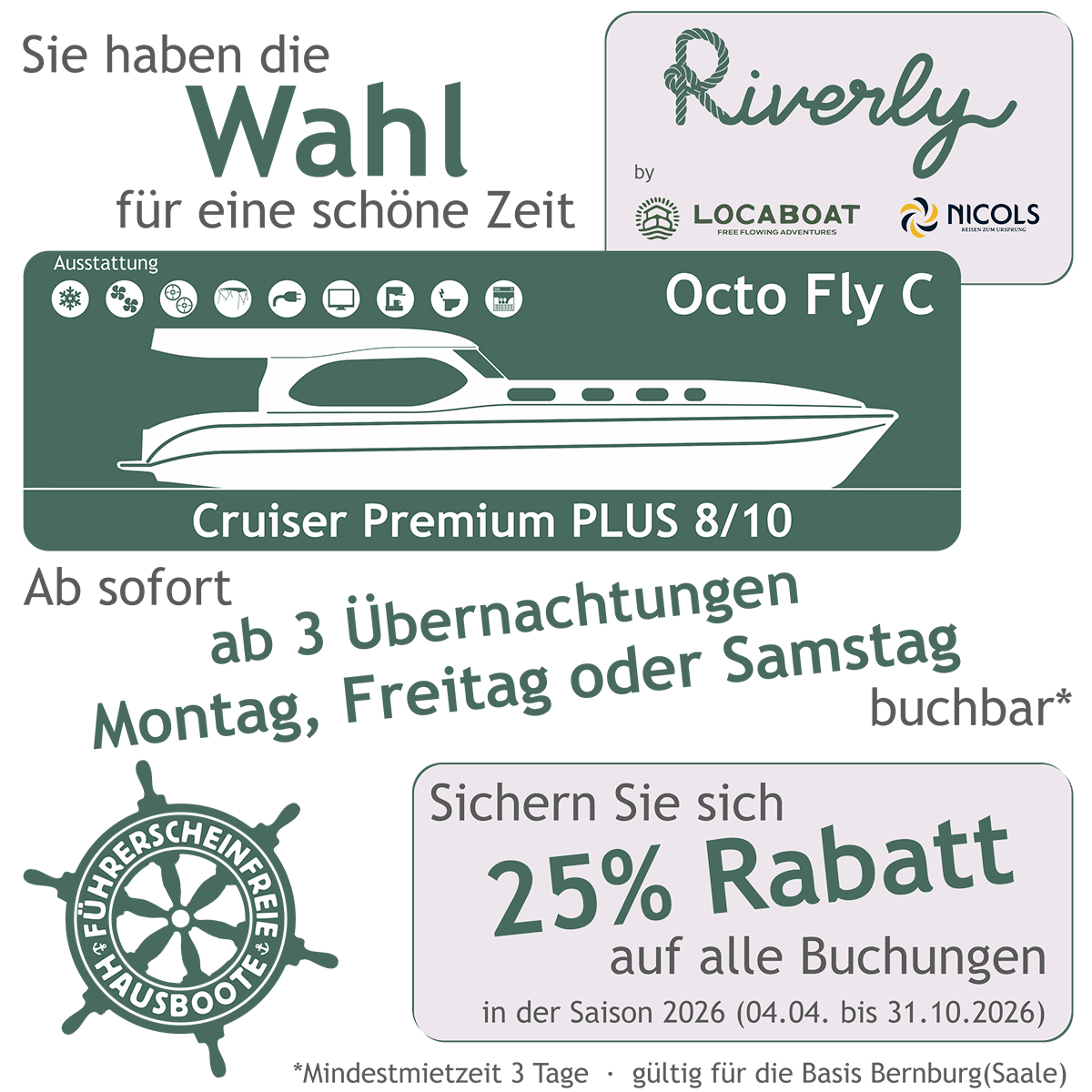 In Bernburg an der Saale vermieten wir Hausboote und Kanus direkt vor Ort.